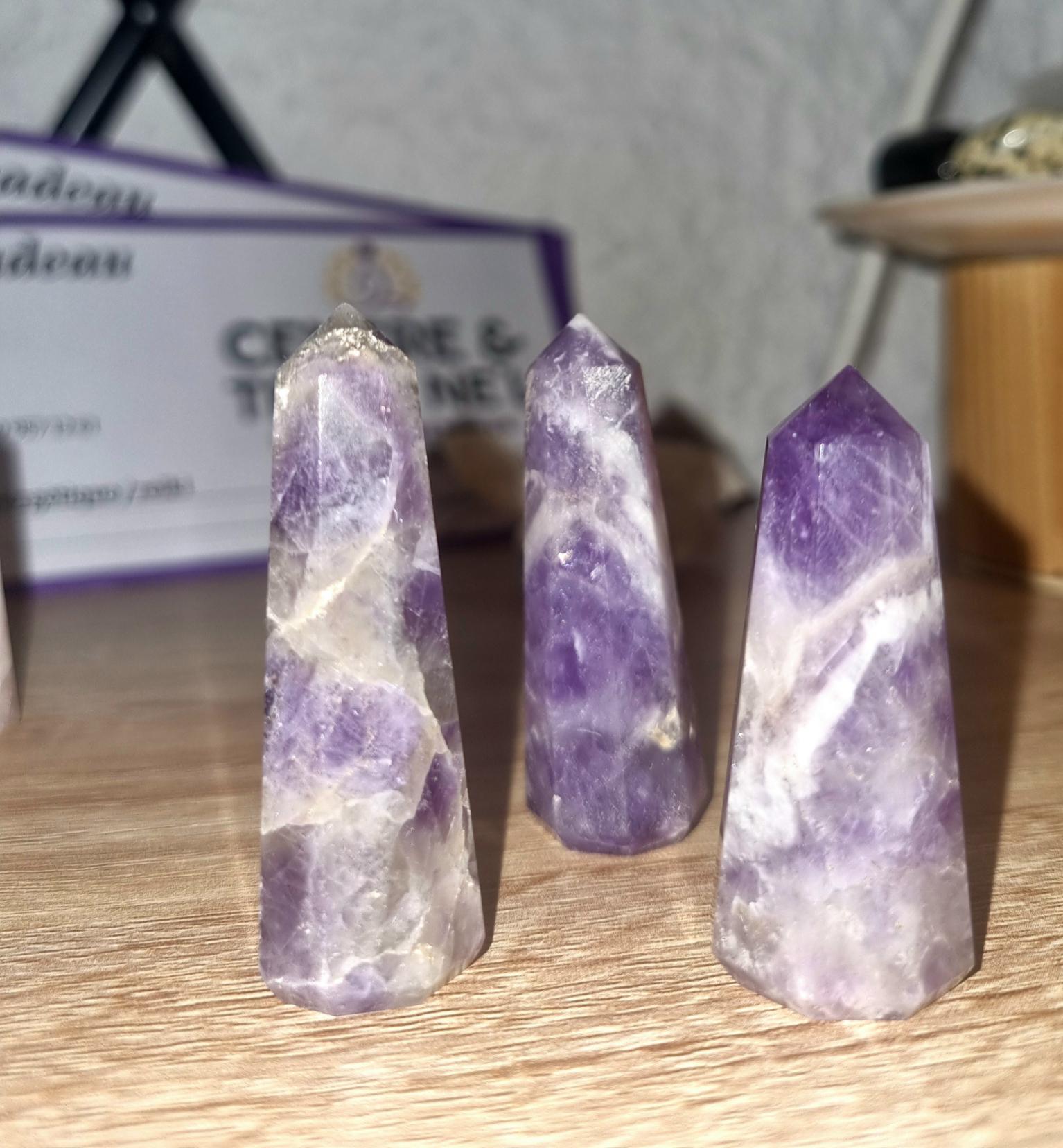 L’améthyste est une pierre très puissante qui à de nombreuses vertus thérapeutiques. C’est la pierre purificatrice par excellence : elle aide à éliminer les toxines et à combattre les addictions. Elle aide aussi à la régulation hormonale. Elle est connue pour soulager les migraines et les problèmes de peau, ainsi que pour favoriser la cicatrisation. Elle est réputée pour éloigner le stress, ouvre l'intuition.