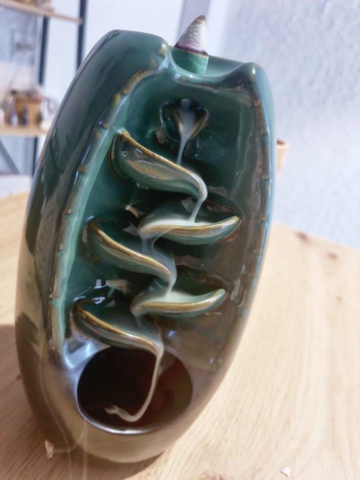 Brûleur d'encens " Paix de la Cascade Bleue " en céramique.